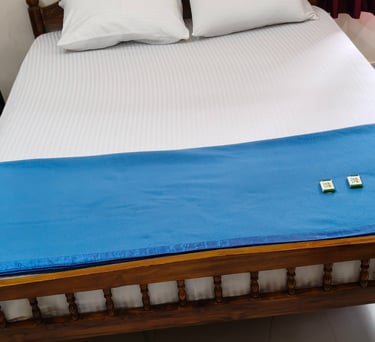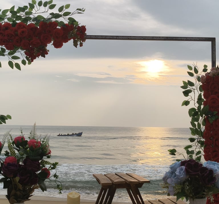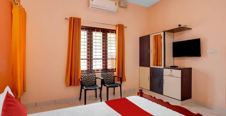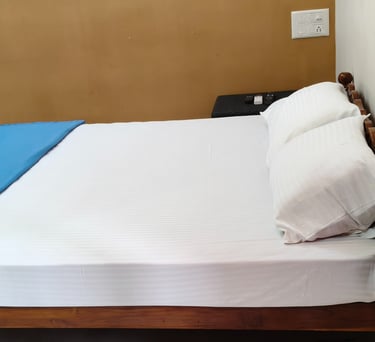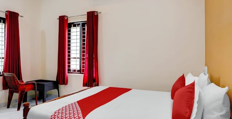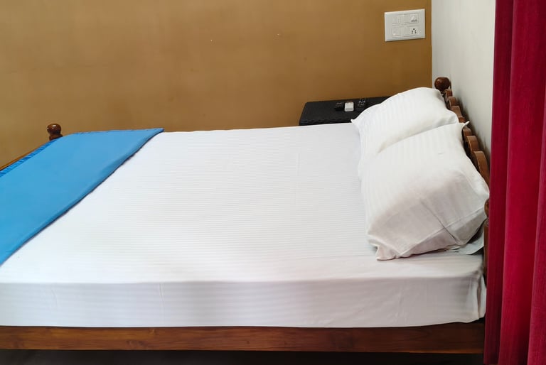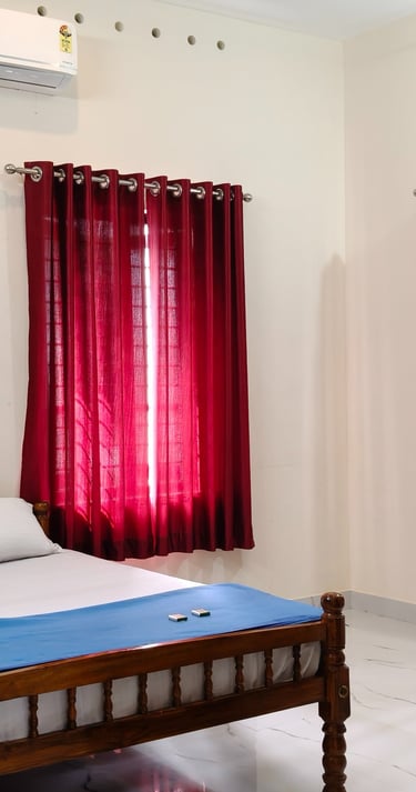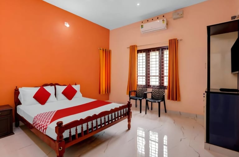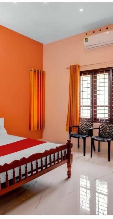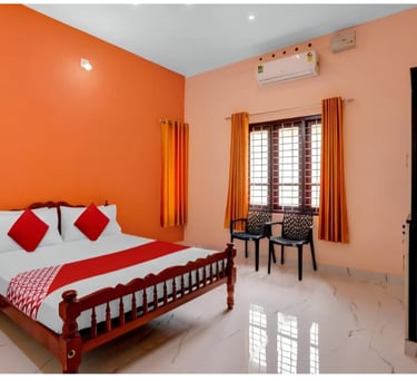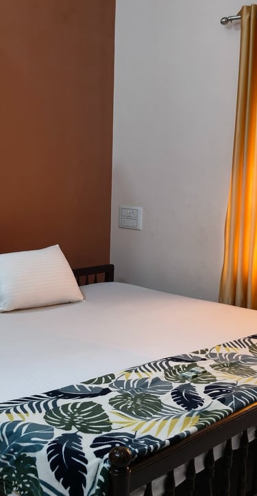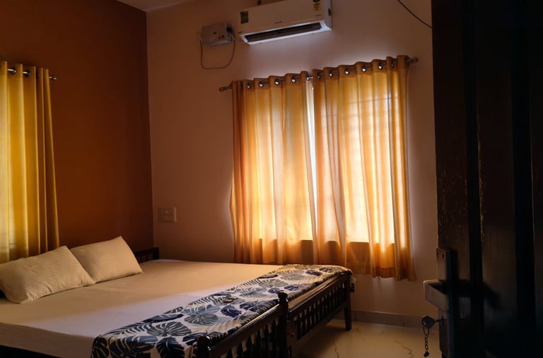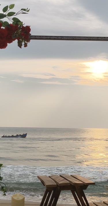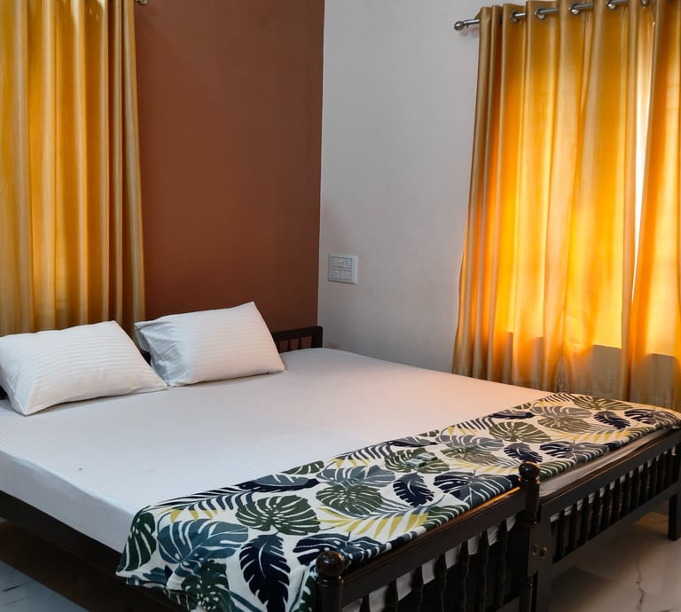 A warm, inviting space with soft linens and calming decor, perfect for relaxing after a day by the sea.